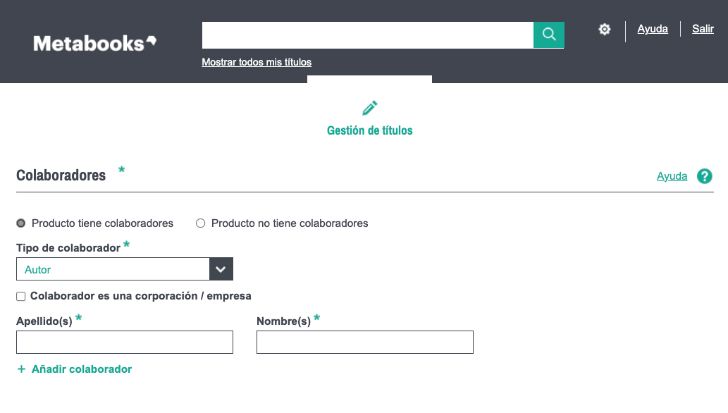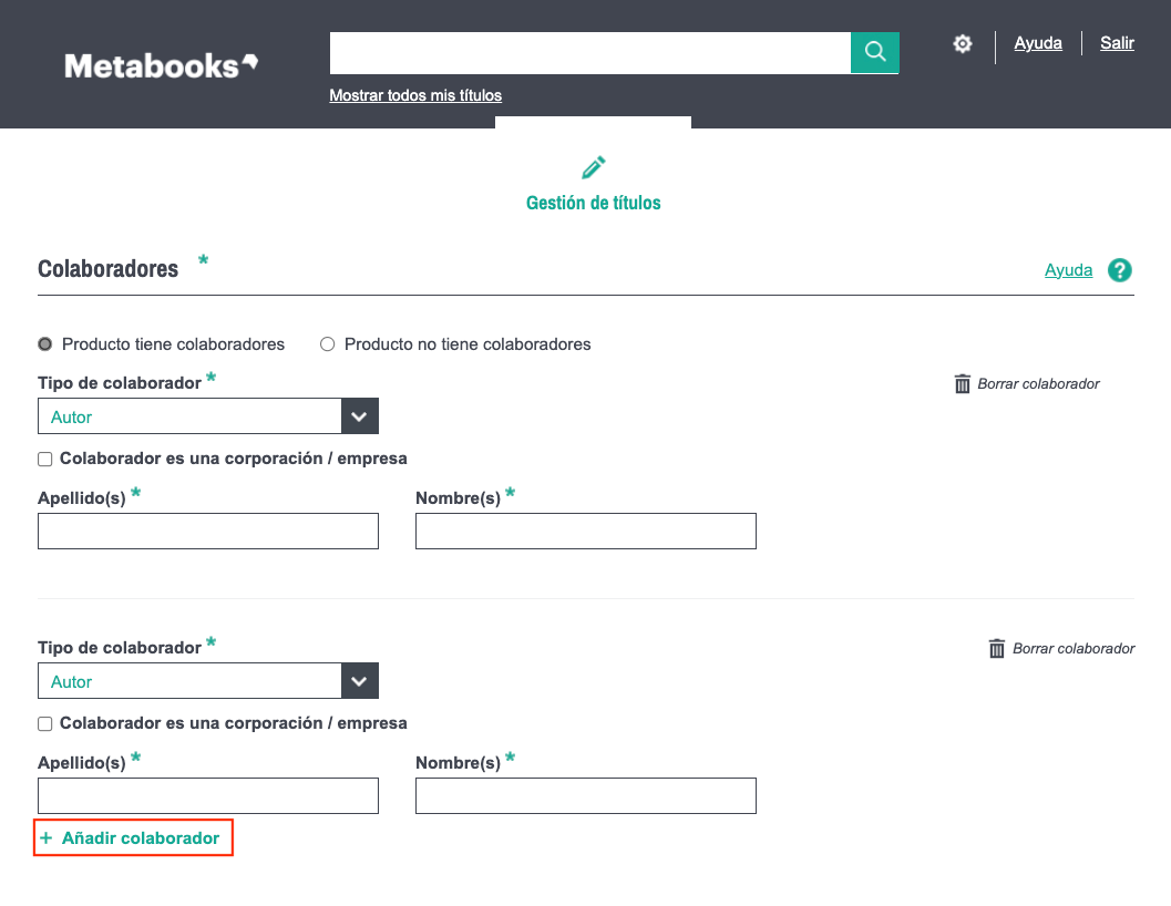 Metabooks basic te permite registrar uno o varios colaboradores relacionados con el producto.