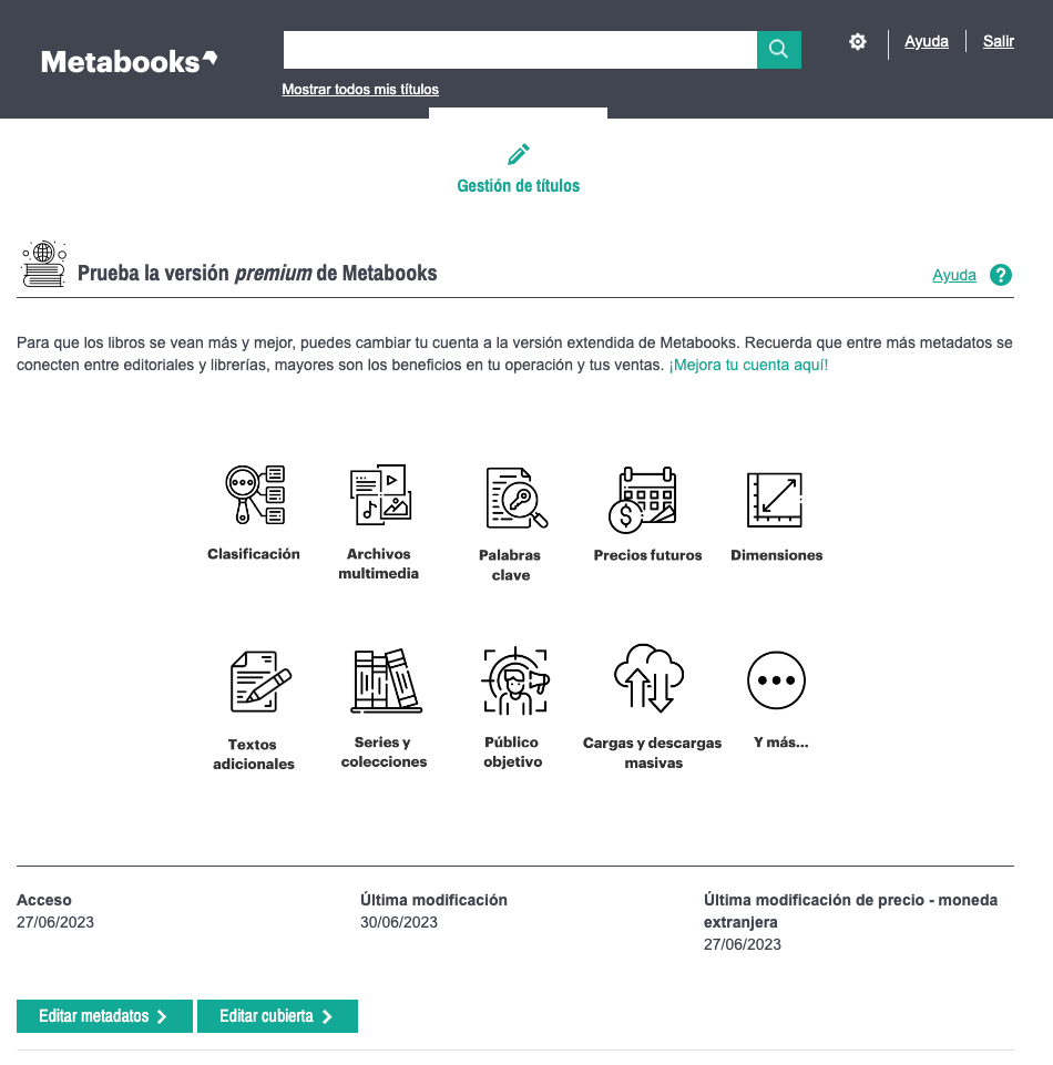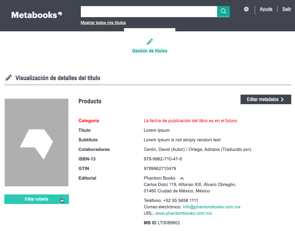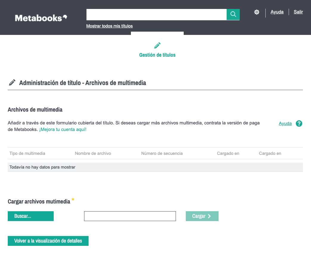 Solo puede cargarse una imagen de cubierta frontal para cada producto que se registre en Metabooks basic.